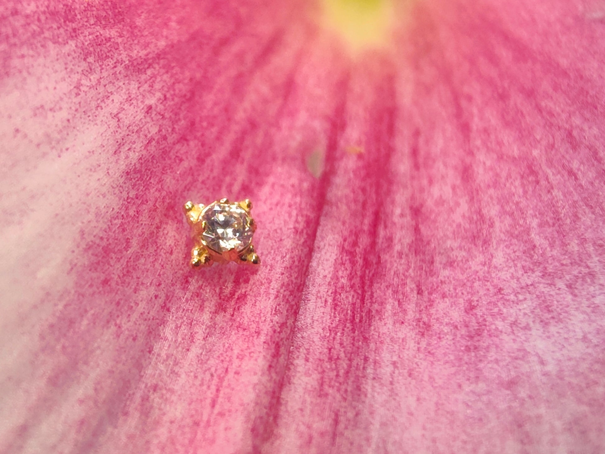 Threadless end. 18ct gold with white CZ. Threadless post not included.
