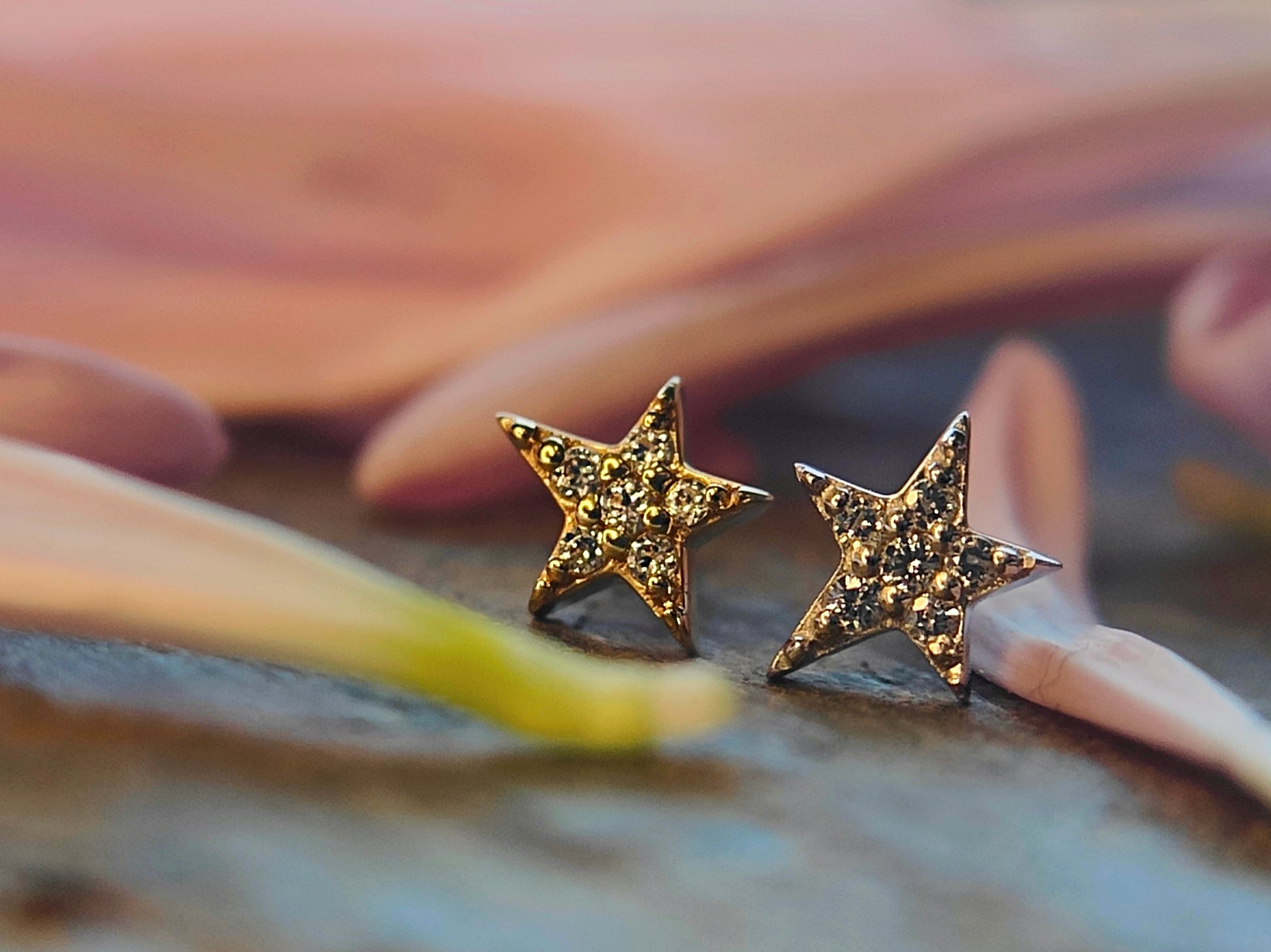 14ct gold Threadless end. Roughly 6mm assymetric star with CZ's. Threadless post not included.