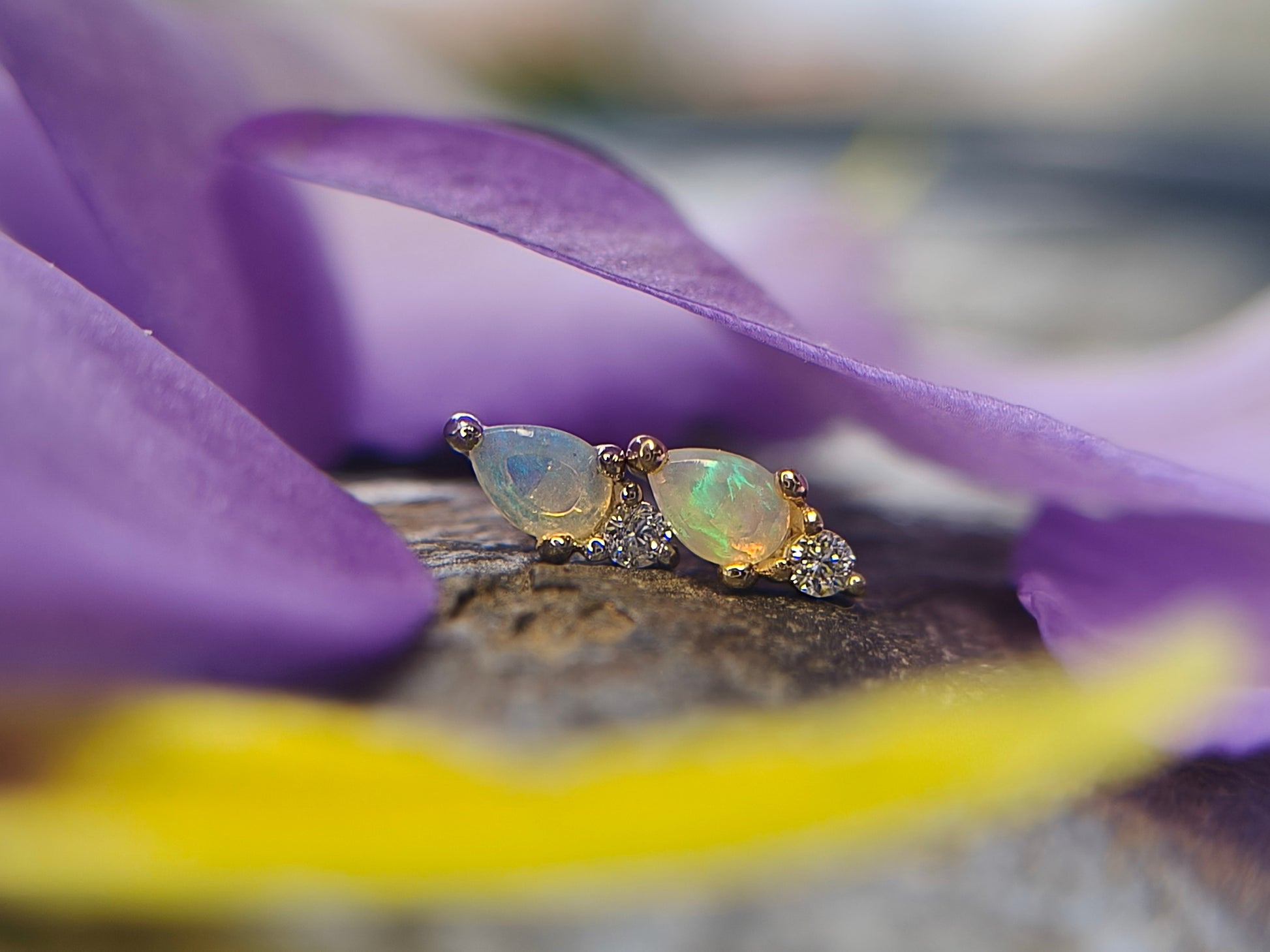 14ct gold threadless end with genuine opal and white cz! Roughly 4mmx2mm in size. Threadless post not included.