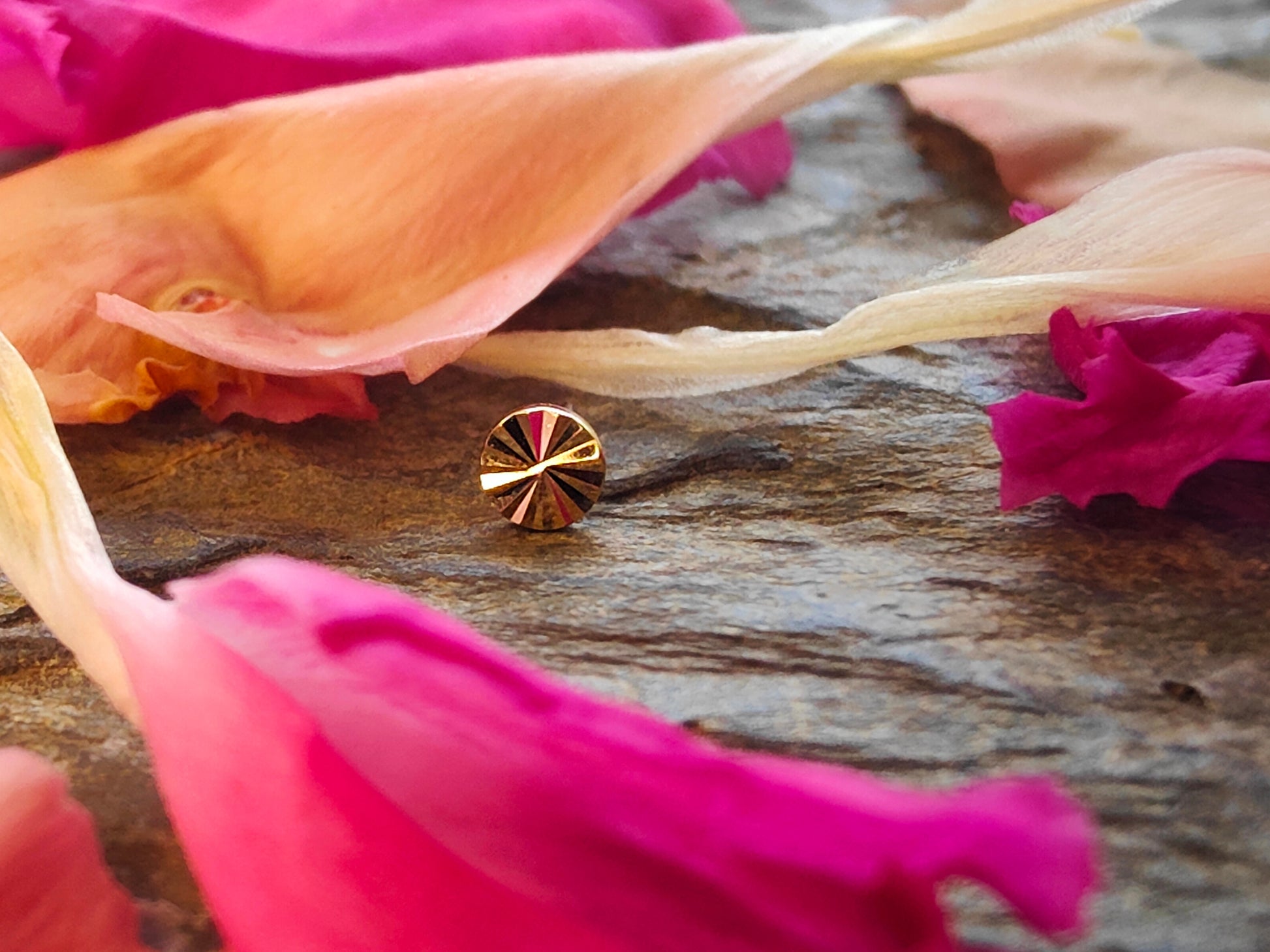 14ct yellow gold laser disc, 3mm. Threadless post not included.