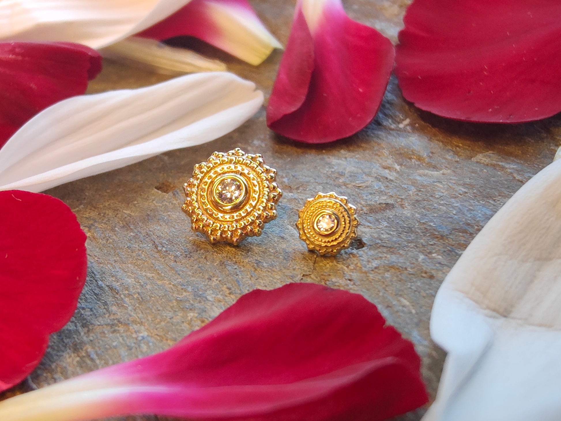 14ct yellow gold with genuine diamond. Threaded end. Threaded post not included.