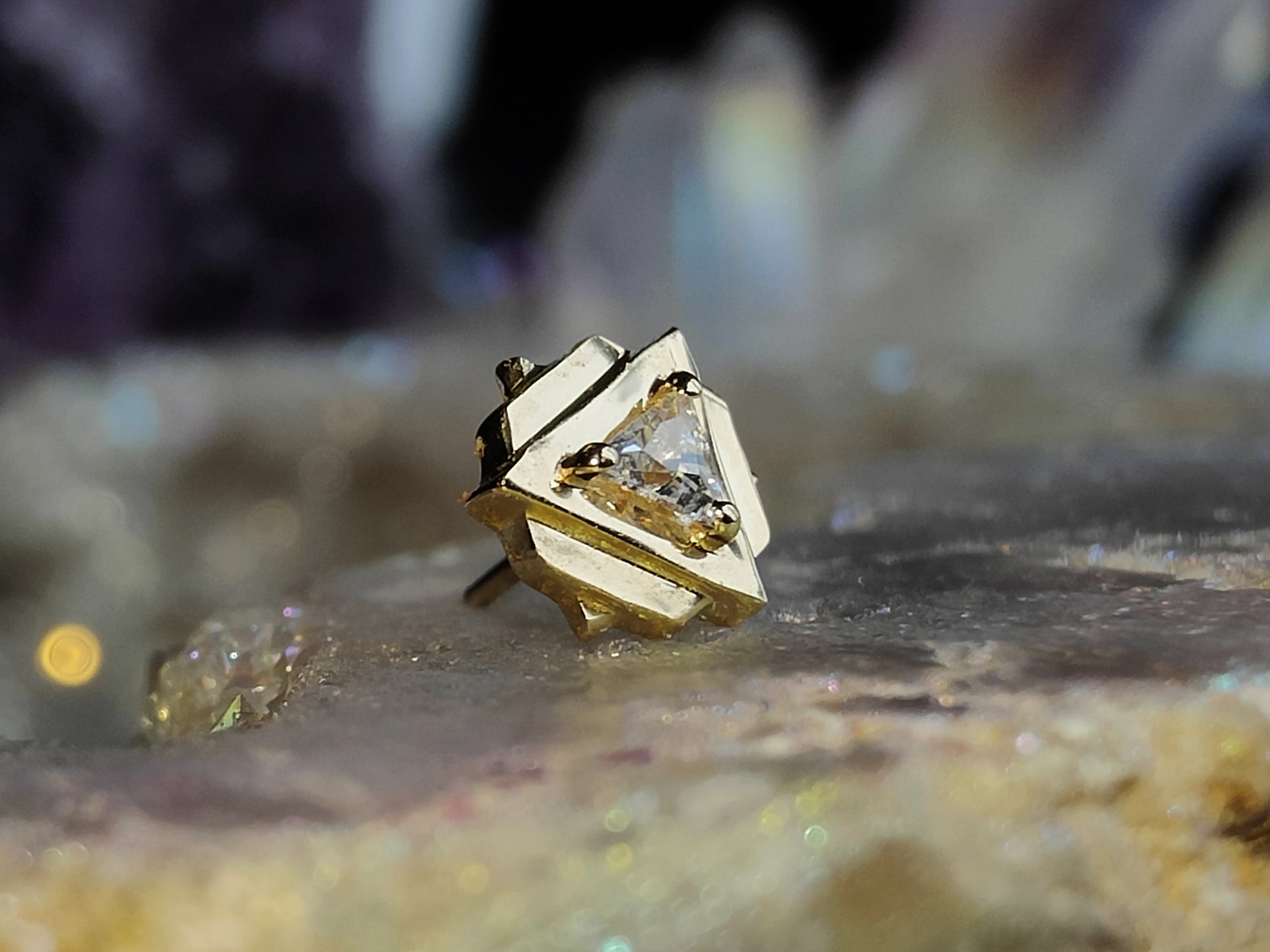 14ct yellow gold Threadless end. 4.8mmx5.2mm. Threadless post not included.