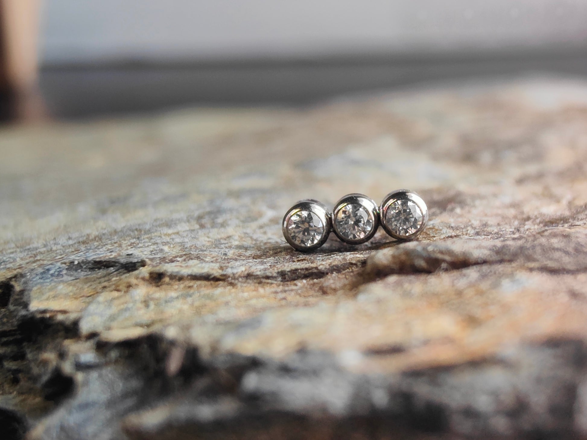 Threadless titanium end. Threadless post not included. 3x 2mm CZs.