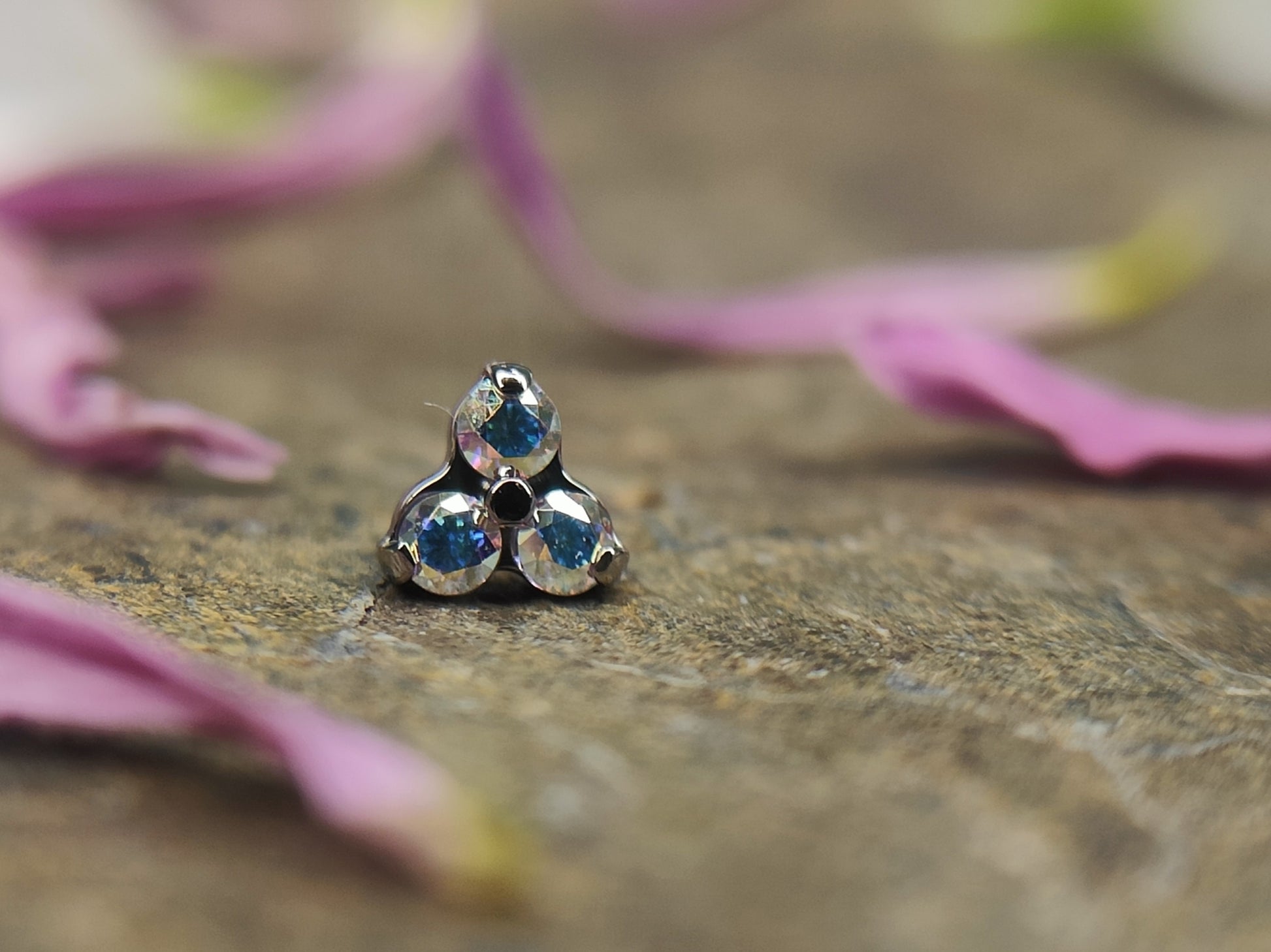 Threadless titanium end. Threadless post not included. 3x1.5mm stones.