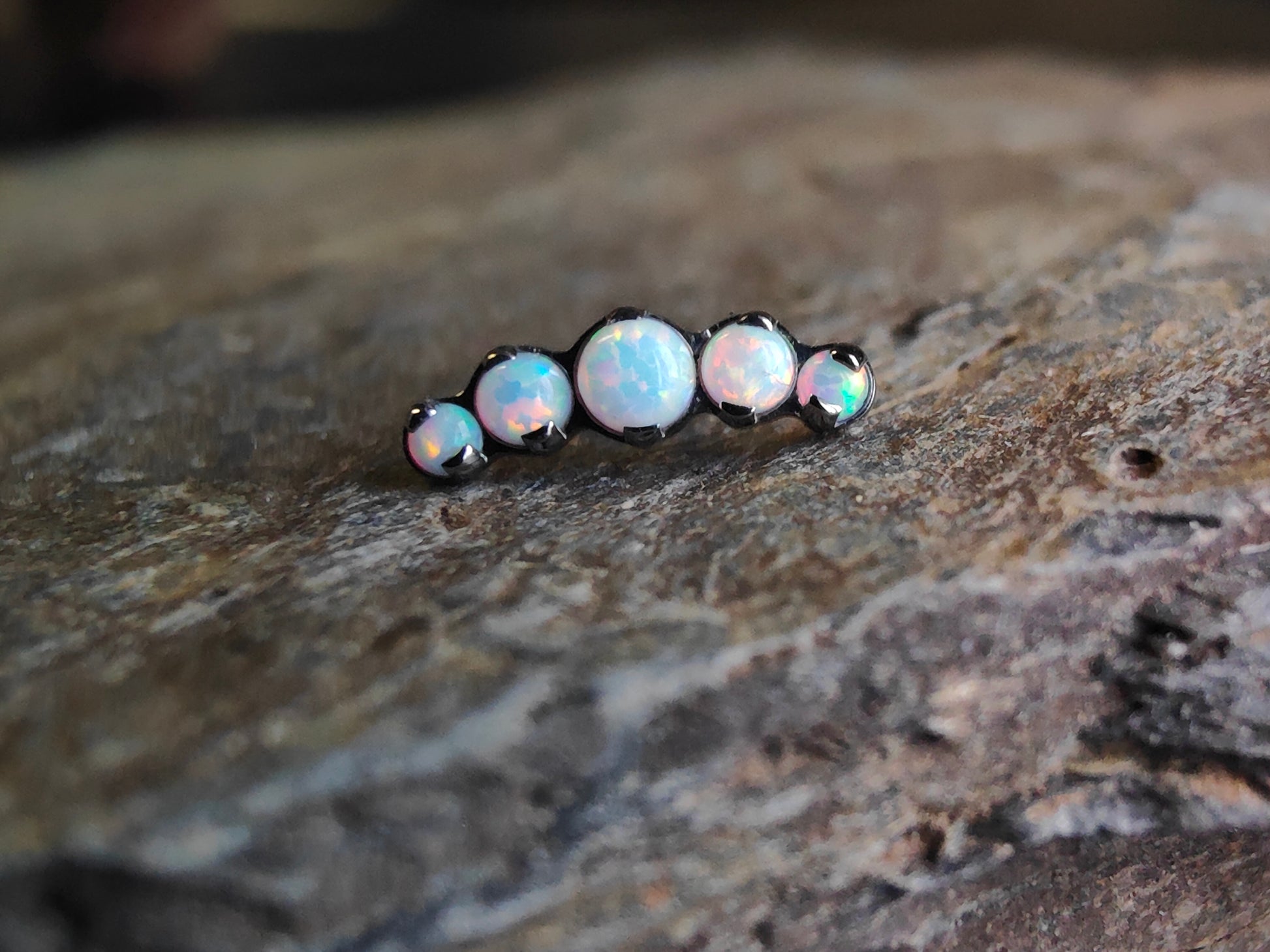 Threadless end. There are 5 x Prong set faceted stones. From left to right - 1.5mm/2mm/2.5mm/2mm/1.5mm. Threadless post not included.