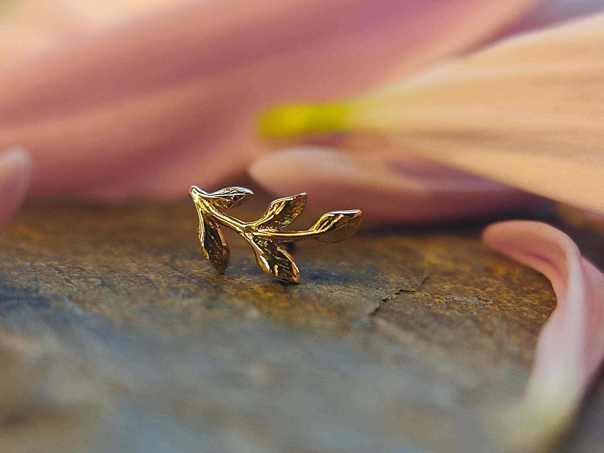 14ct yellow gold leaf piece, roughly 5mm in length. Threadless post not included.