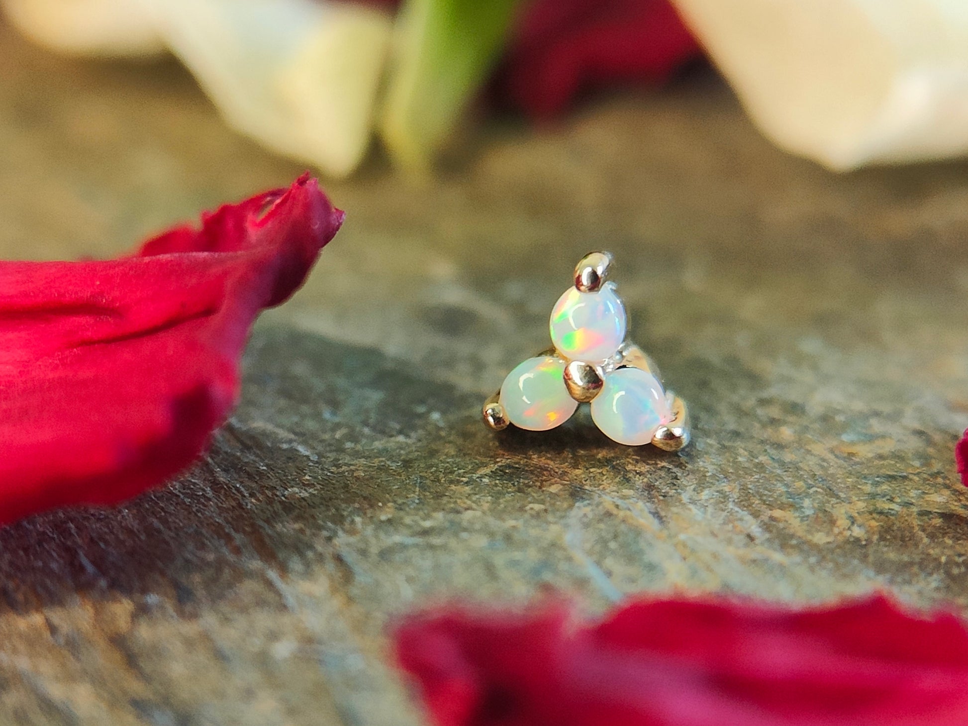 14ct gold Threadless end with 3x 1.5mm opals. Threadless post not included.