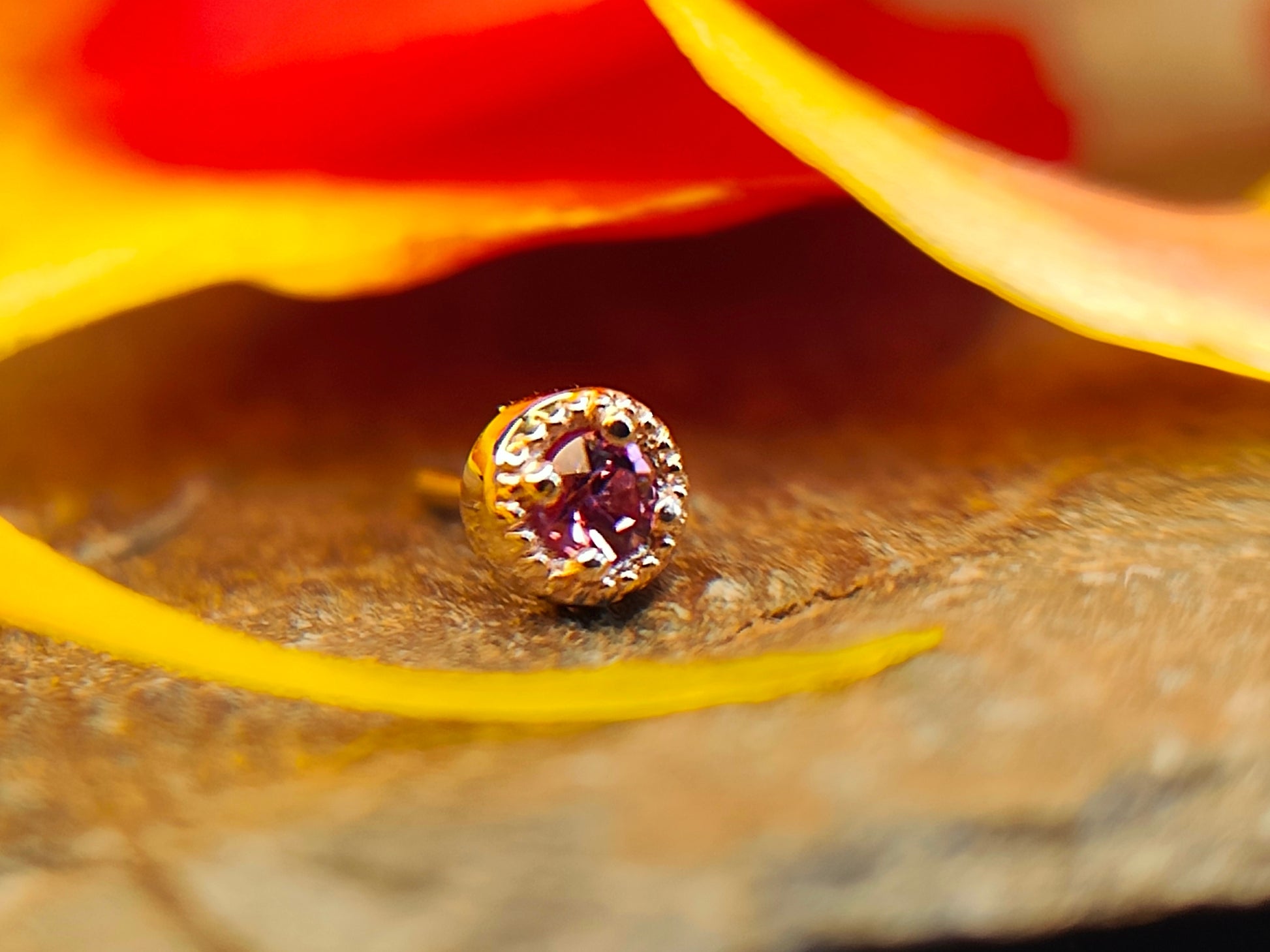 Local Natives 14ct gold Threadless end with a Grape Garnet. Roughly 3mm in size.
