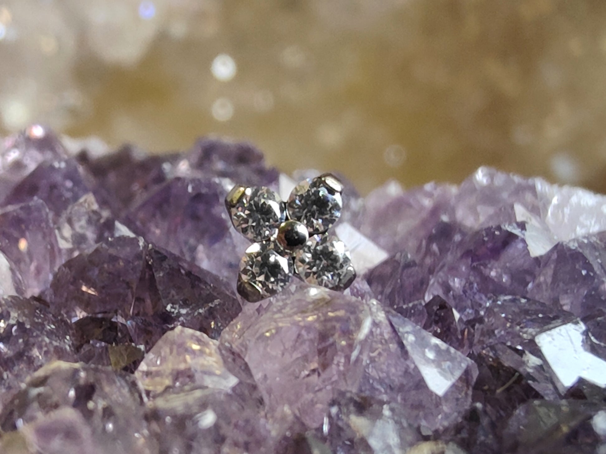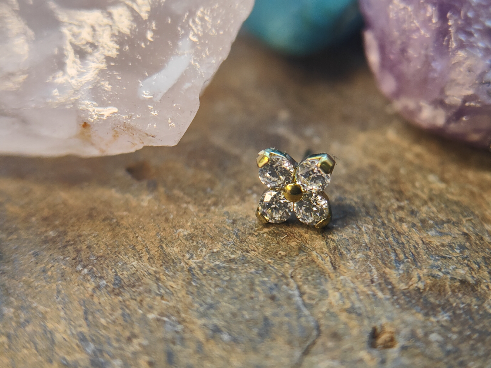 Threadless end. 4x 1.5mm or 2mm stones. Threadless post not included.