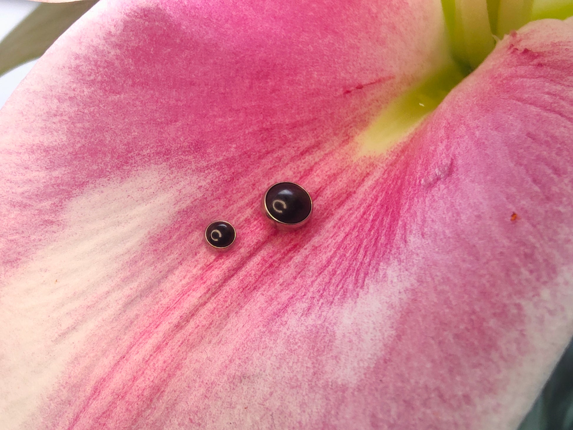 Threadless titanium onyx cabachons. Threadless posts not included.