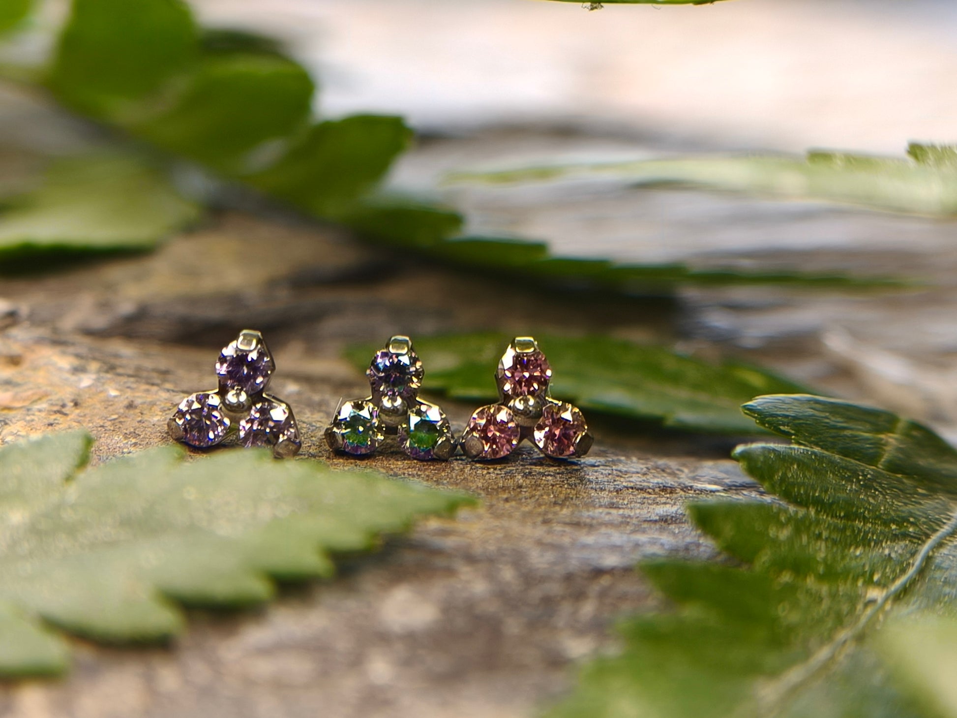 Threadless Titanium end. 3x1mm stones. Threadless post not included.