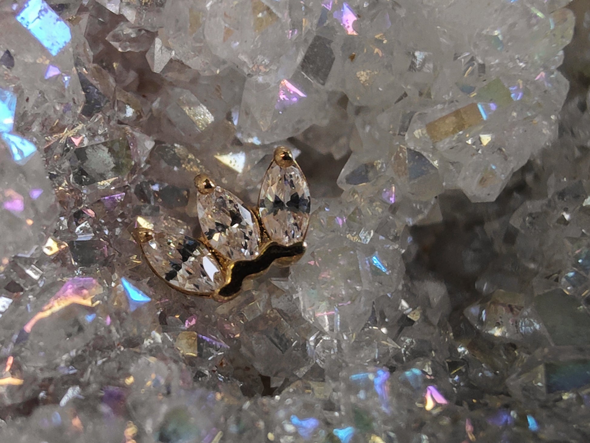14kt WHITE gold Threadless end. Threadless post not included. 3x 1mm×2mm marquise stones.